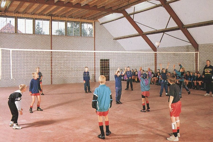 Eigen sport- en recreatievelden direct naast de accommodaties, voorzien van voetbaldoelen en volleybalnetten