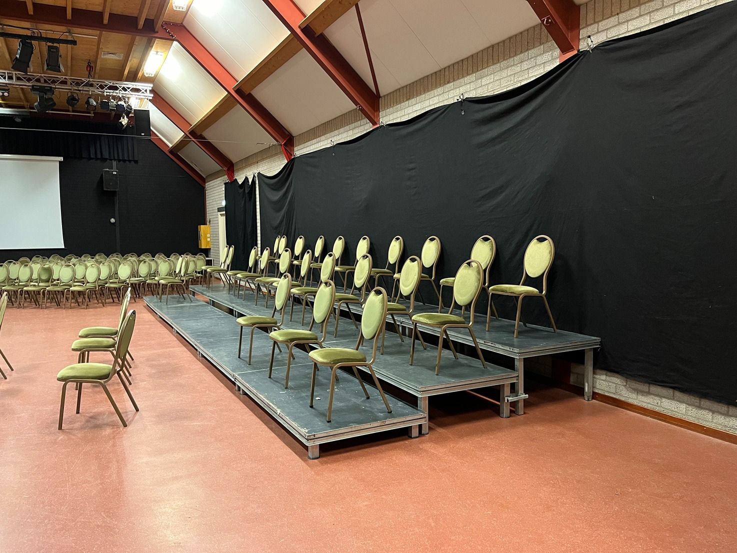 Informeer vooraf naar de beschikbaarheid. Uiterlijk 1 week voor aankomst de reservering aan ons doorgeven. Je bouwt het podium zelf op- en weer af.